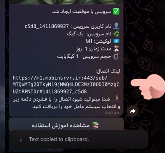 - لینک اشتراک وی پی ان رو داخل ربات لمس کنین که کپی شه